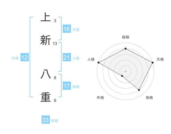 上新 八重さんの地格は17画の4点!