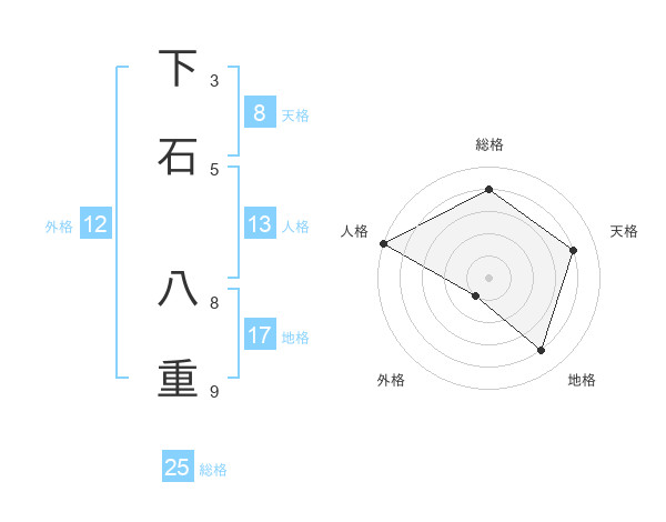 下石 八重さんの総格は25画の4点!