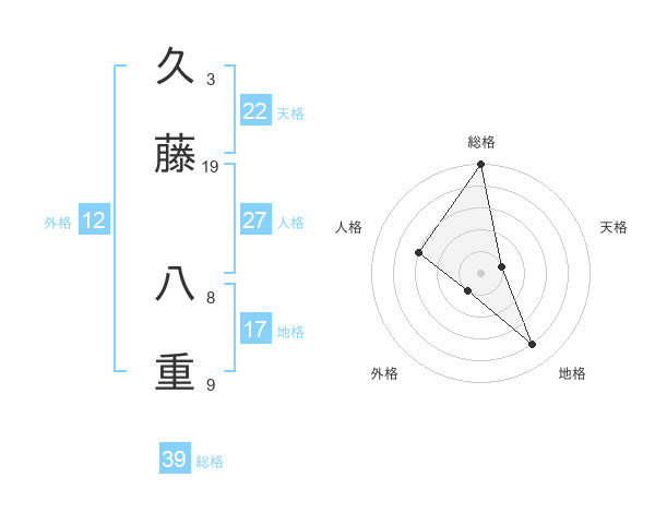 久藤 八重さんの総格は39画の5点!