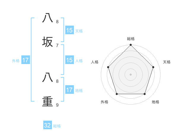 八坂 八重さんの外格は17画の4点!