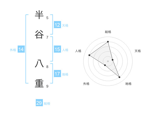 半谷 八重さんの総格は29画の4点!