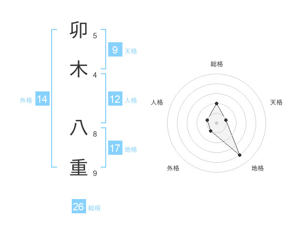 卯木 八重さんの総格は26画の2点!