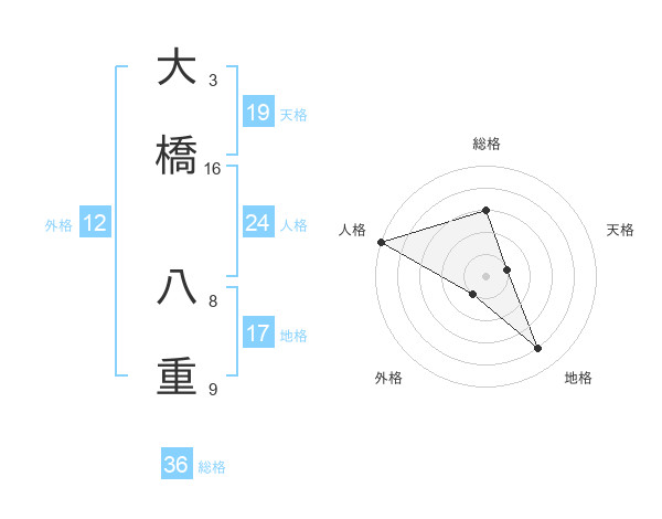 大橋 八重さんの外格は12画の1点!