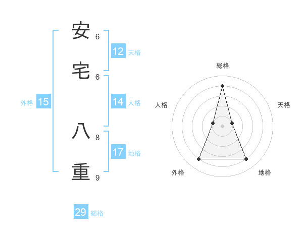 安宅 八重さんの総格は29画の4点!
