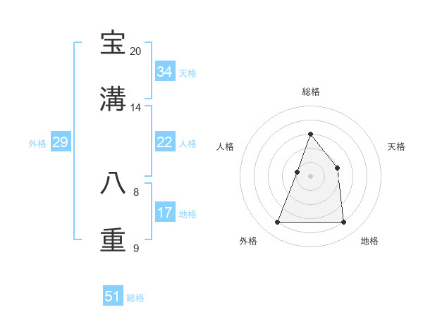 宝溝 八重さんの総格は51画の3点!
