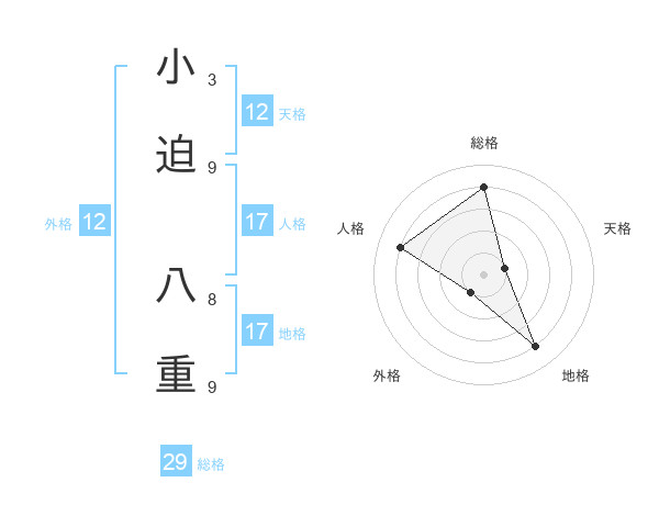 小迫 八重さんの総格は29画の4点!