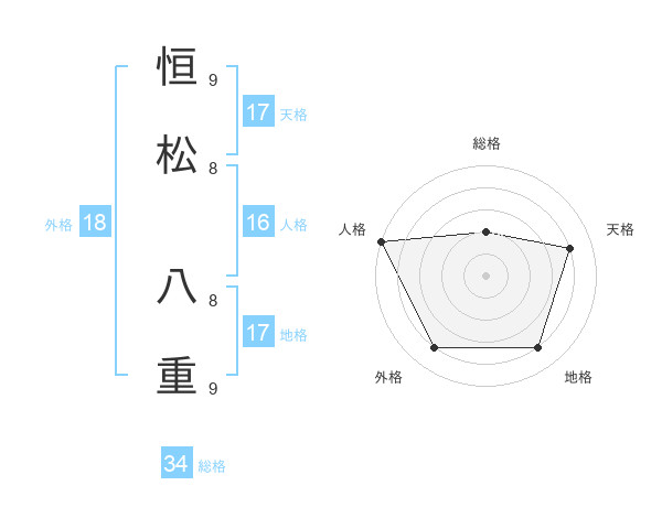 恒松 八重さんの天格は17画の4点!