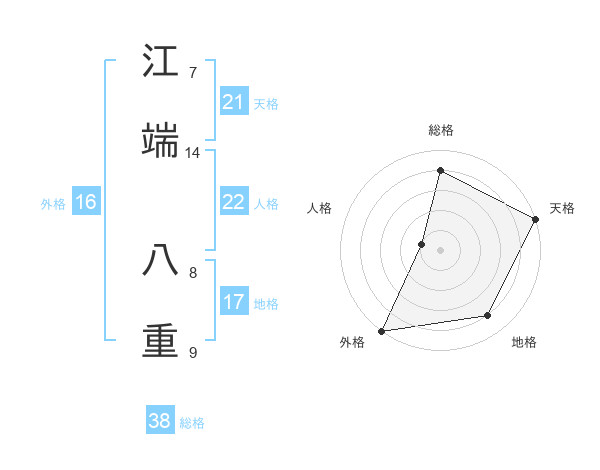 江端 八重さんの総格は38画の4点!