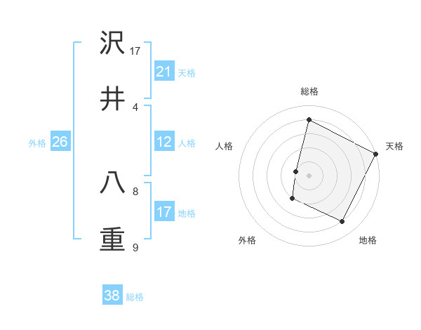 沢井 八重さんの総格は38画の4点!