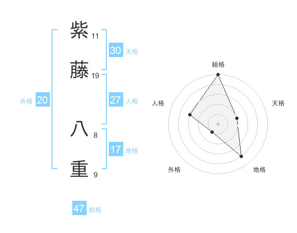 紫藤 八重さんを姓名の画数から五運を鑑定