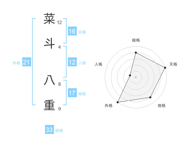 菜斗 八重さんを姓名の画数から五運を鑑定