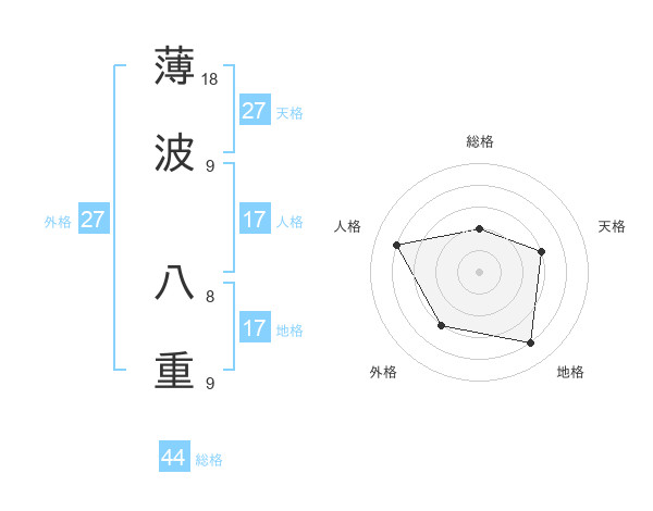 薄波 八重さんの総格は44画の2点!
