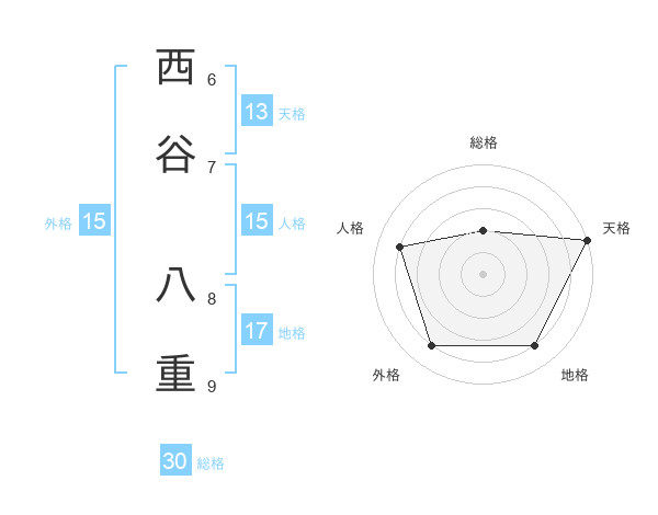西谷 八重さんの人格は15画の4点!