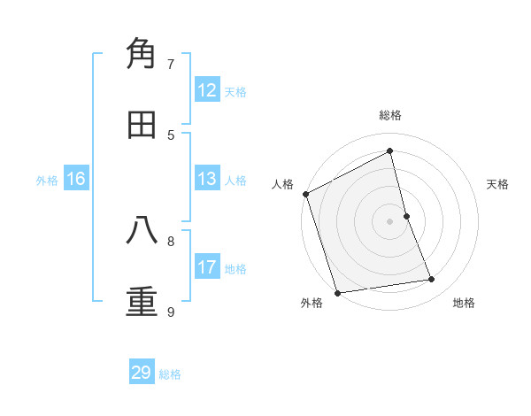 角田 八重さんの地格は17画の4点!