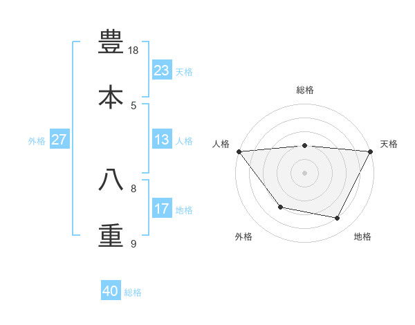 豊本 八重さんの天格は23画の5点!