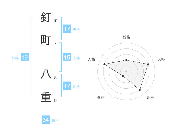 釘町 八重さんの天格は17画の4点!