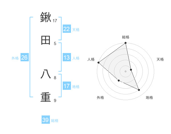 鍬田 八重さんの総格は39画の5点!