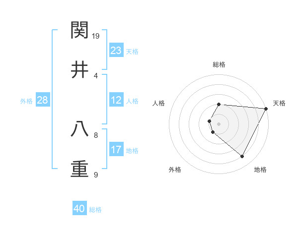 関井 八重さんの外格は28画の1点!