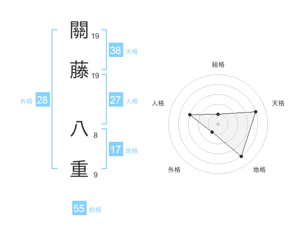 關藤 八重さんの天格は38画の4点!