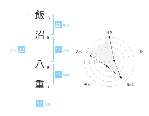 飯沼 八重さんの総格は39画の5点!