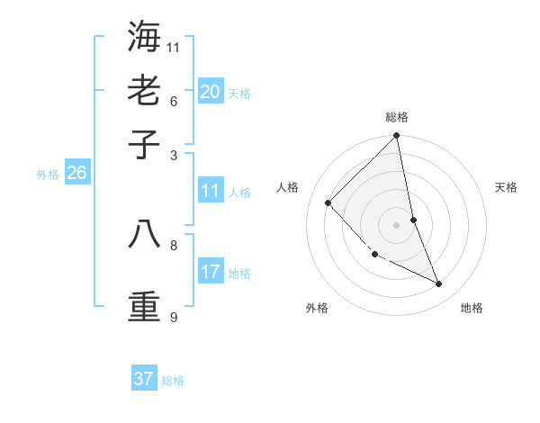 海老子 八重さんの総格は37画の5点!
