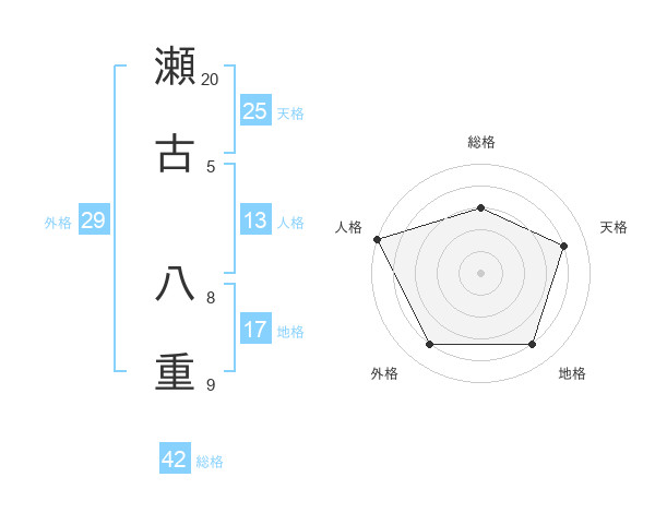瀬古 八重さんを姓名の画数から五運を鑑定