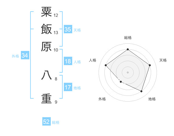 粟飯原 八重さんを姓名の画数から五運を鑑定