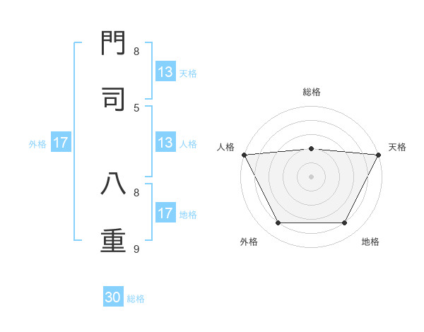 門司 八重さんの外格は17画の4点!