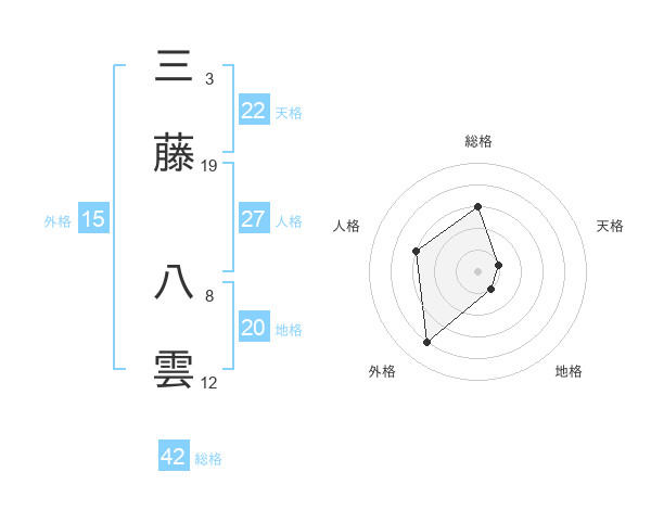 三藤 八雲さんの天格は22画の1点!