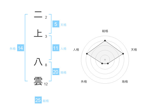 二上 八雲さんの地格は20画の1点!