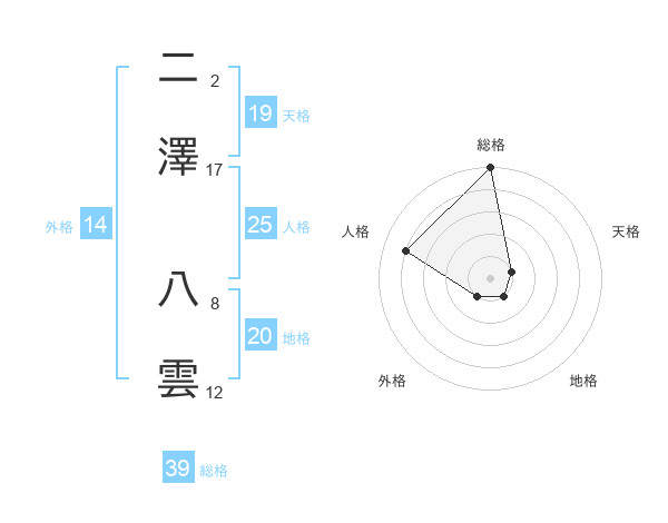 二澤 八雲さんを姓名の画数から五運を鑑定