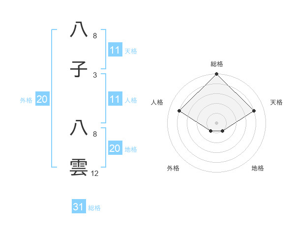 八子 八雲さんの総格は31画の5点!