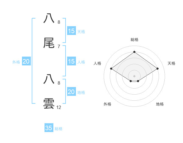 八尾 八雲さんの総格は35画の4点!