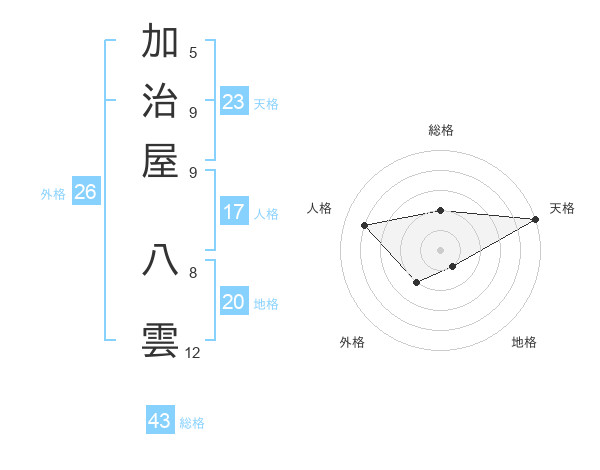 加治屋 八雲さんを姓名の画数から五運を鑑定