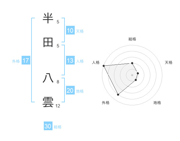 半田 八雲さんの総格は30画の2点!