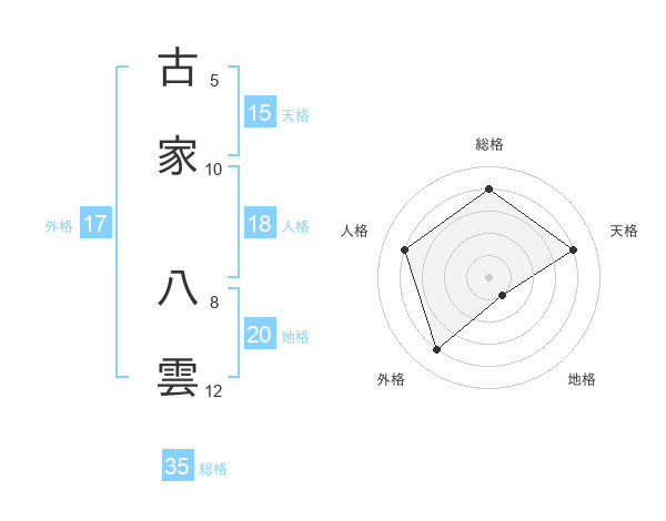 古家 八雲さんの総格は35画の4点!