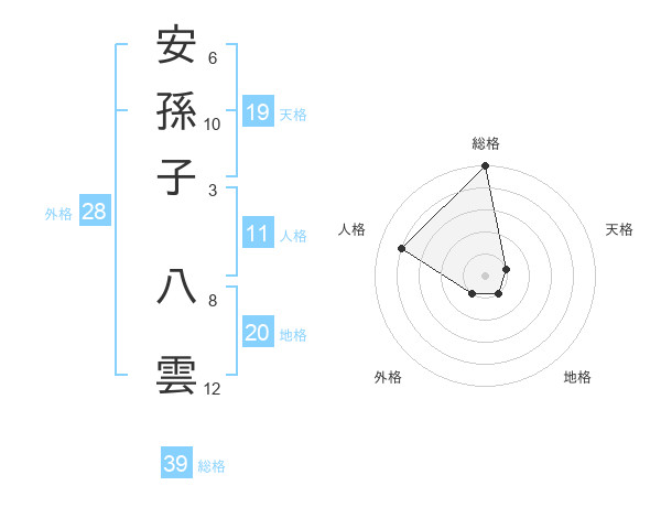 安孫子 八雲さんの総格は39画の5点!