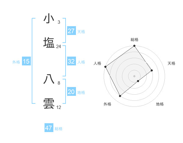 小塩 八雲さんを姓名の画数から五運を鑑定