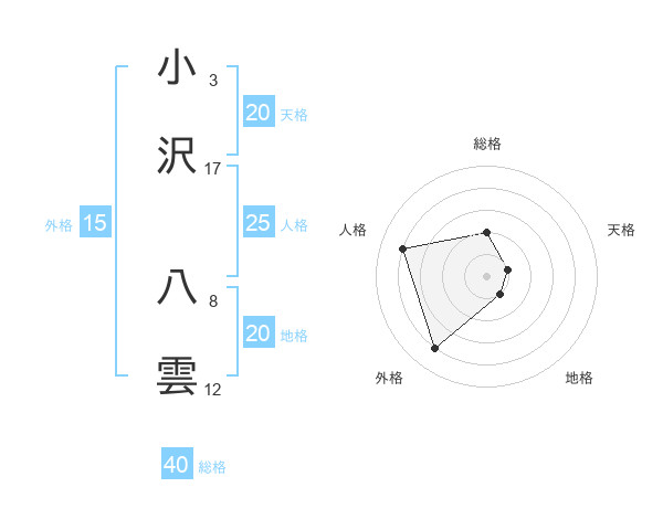 小沢 八雲さんの天格は20画の1点!