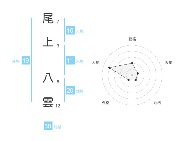 尾上 八雲さんを姓名の画数から五運を鑑定