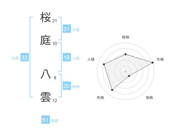 桜庭 八雲さんの総格は51画の3点!