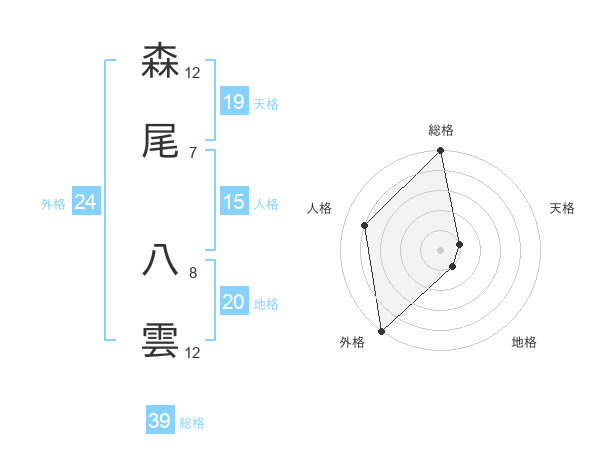 森尾 八雲さんの総格は39画の5点!