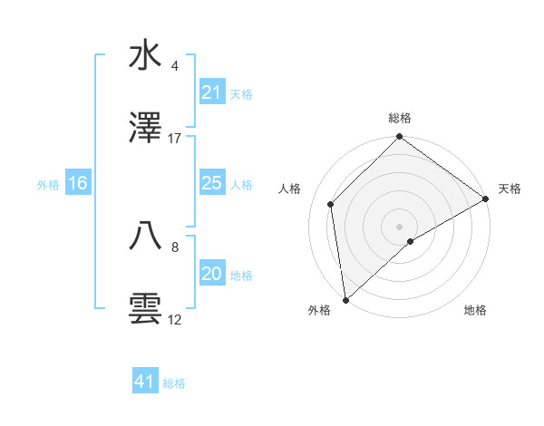 水澤 八雲さんの天格は21画の5点!