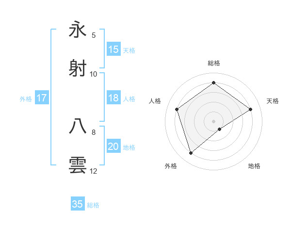 永射 八雲さんの地格は20画の1点!