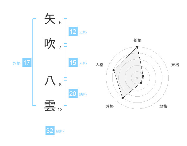 矢吹 八雲さんの総格は32画の5点!
