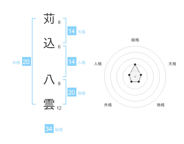 苅込 八雲さんを姓名の画数から五運を鑑定