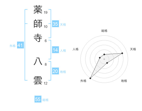 薬師寺 八雲さんの天格は35画の4点!