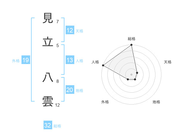 見立 八雲さんの総格は32画の5点!