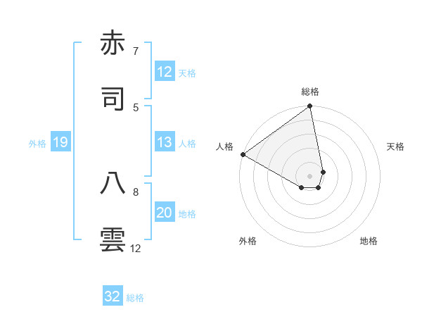 赤司 八雲さんを姓名の画数から五運を鑑定