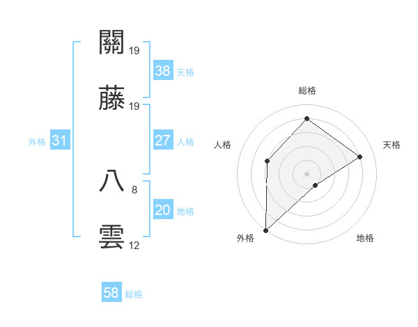 關藤 八雲さんの外格は31画の5点!